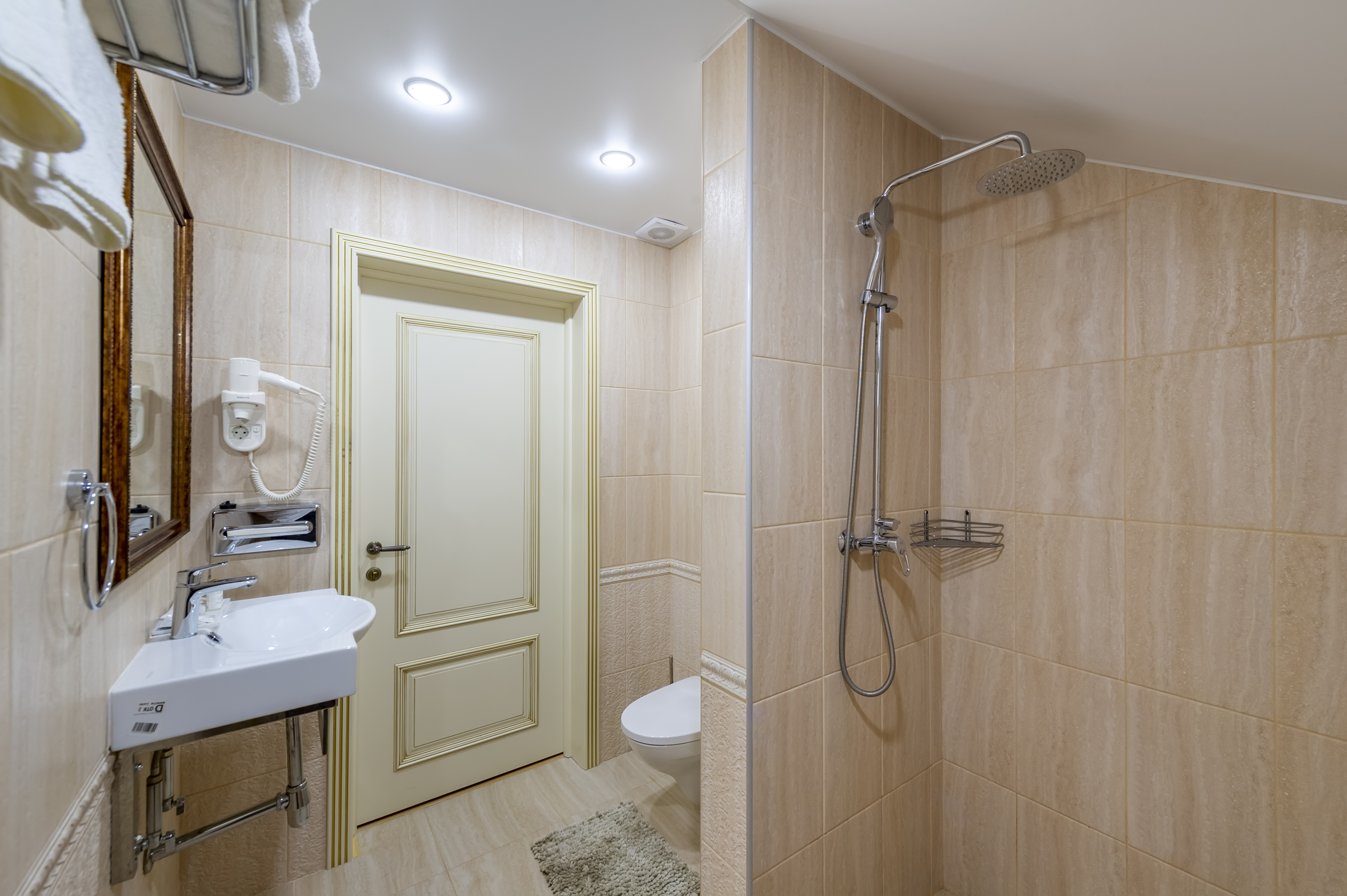 🚿 Душ, халат, тапочки, фен, набор косметики, полотенца